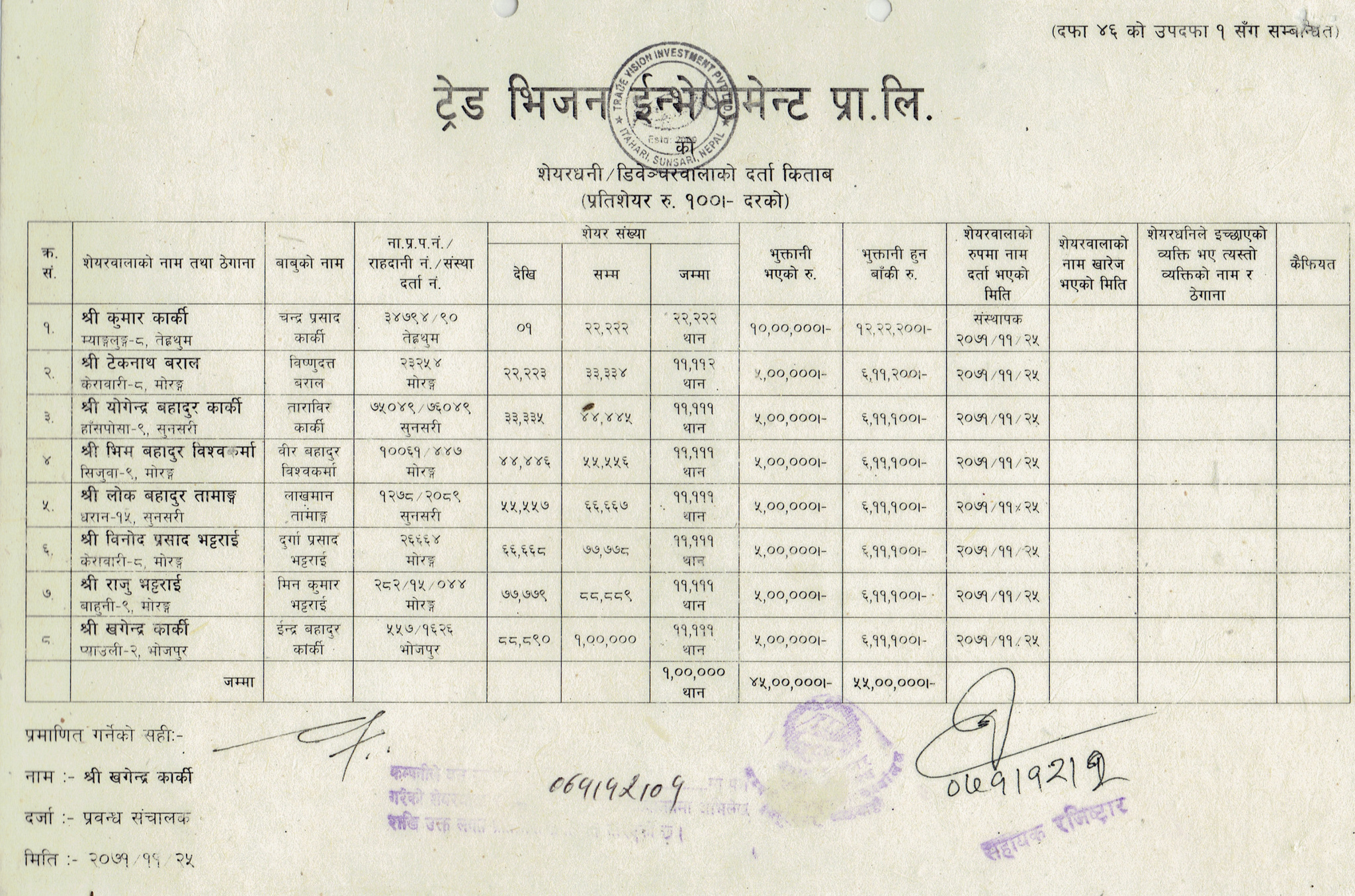 These documents are certified and legally registered under the laws of Nepal. Click any document to view it in full size.